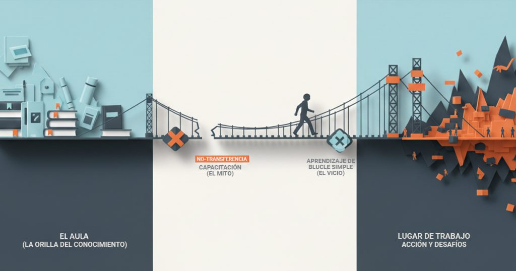 Baja Transferencia de Aprendizaje en Capacitación – Brecha entre el Aula y el Trabajo – Frustración en el Aprendizaje Experiencial – modelo kolb bucle doble – transferencia habilidades blandas